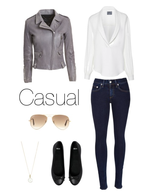 For my casual outfit, it is fall and somewhere between 50 and 60 degrees. I love wearing moto jackets and keeping everything really simple. If this could be my uniform everyday I would be a happy girl!