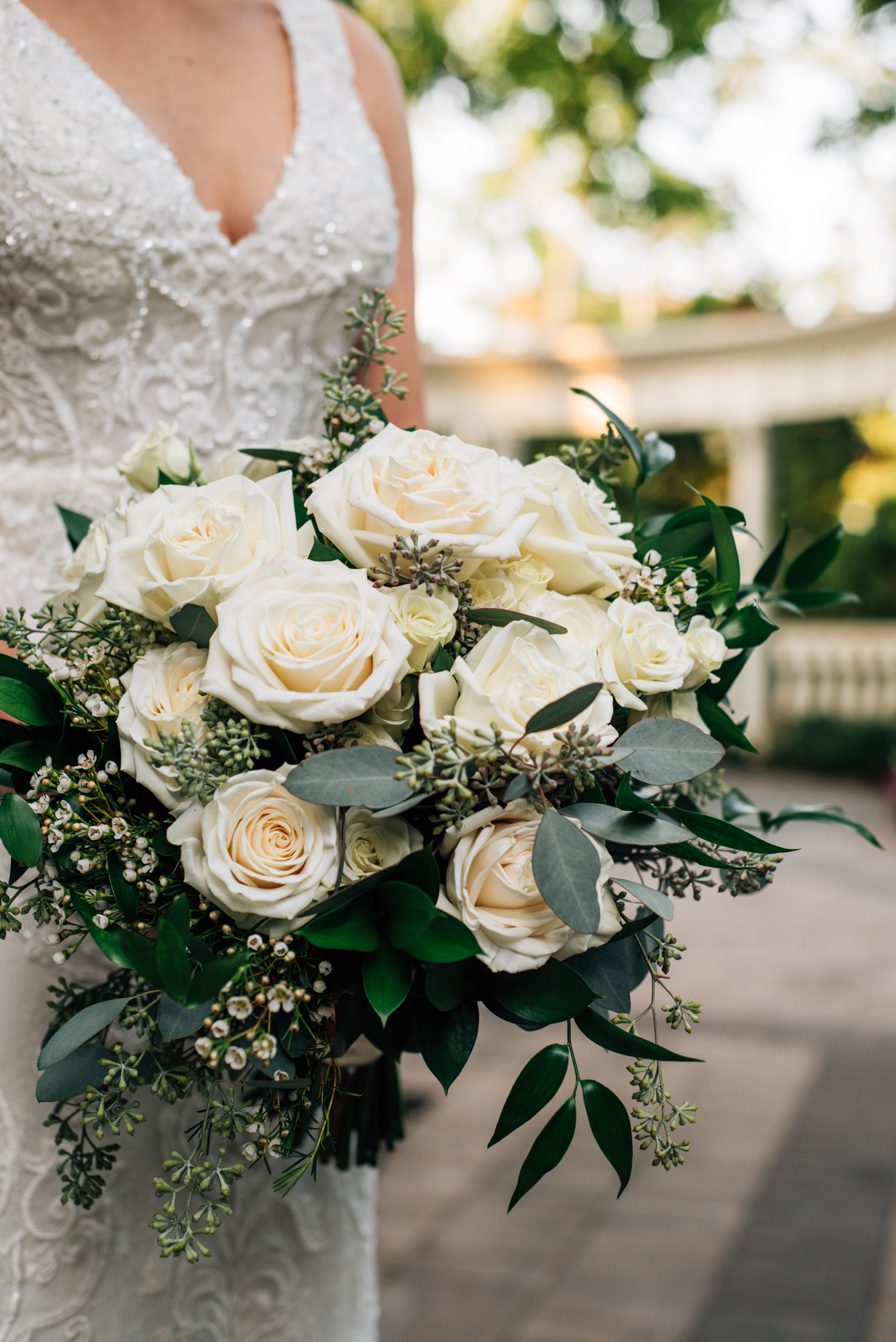 We were lucky to have already identified the venue we ended up using during our initial venue search as the perfect place for our micro wedding. With ceremony space, food, cake, bar, and reception space included, there wasn’t much else we needed to provide. My mother was a huge help (read: she did it all) finding new hair and makeup artists that were still working during COVID. She also identified a local florist that could support a smaller event, and we were in business from there.